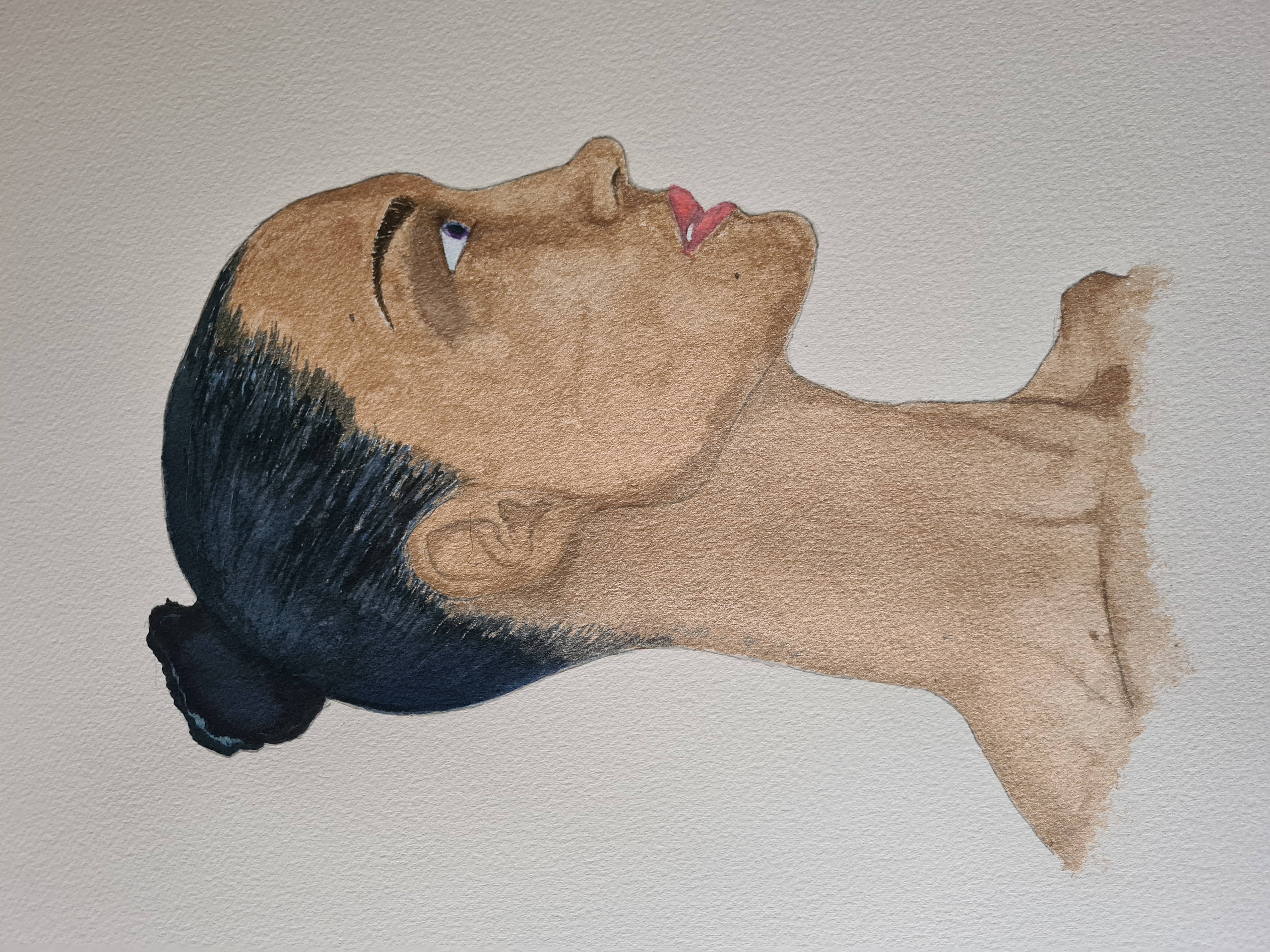 Il primo disegno 2025, base matita e pigmentazione con acquarelli liquidi Talens Ecoline su cotone, oro per la pelle